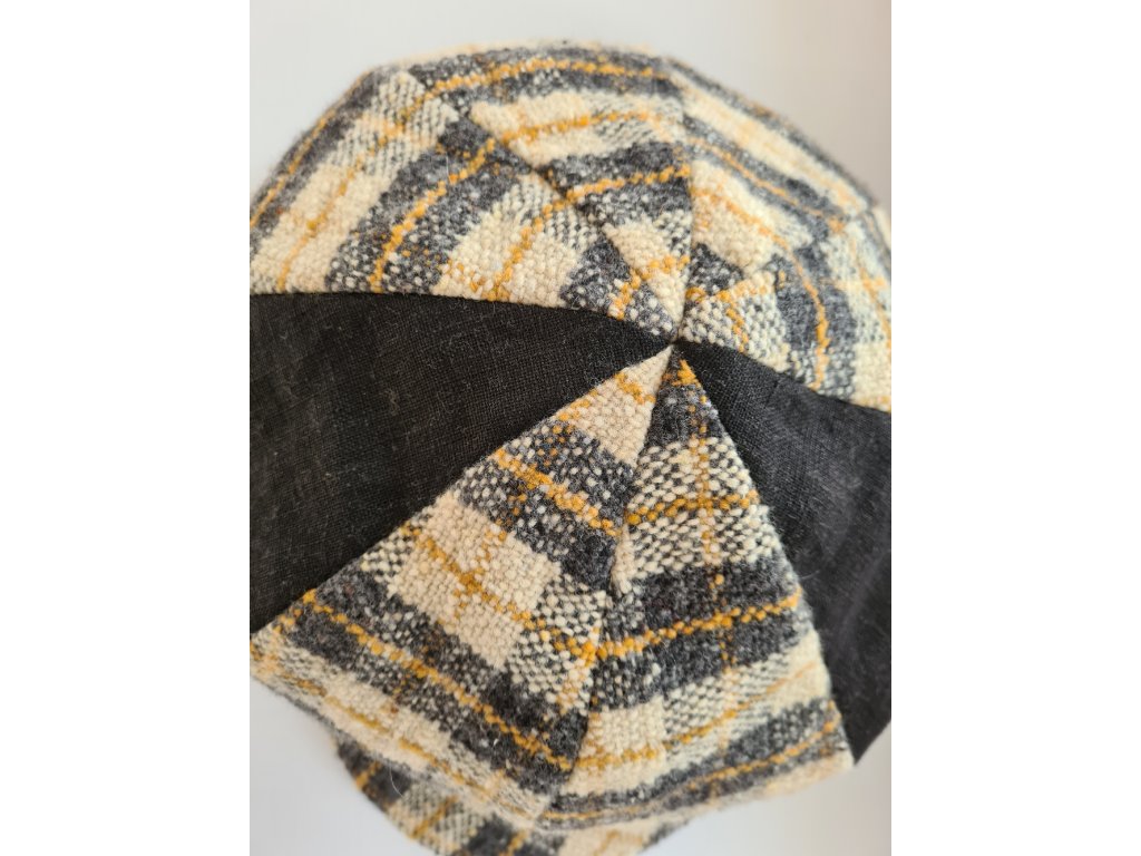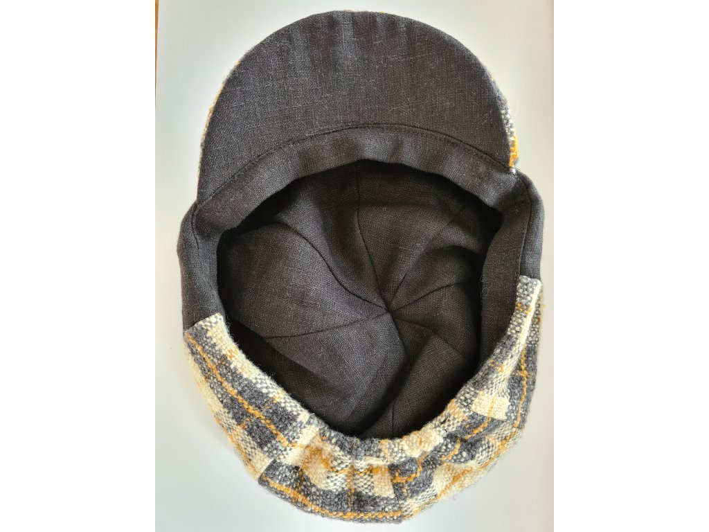 Čepice z ručně tkané vlněné látky s podšívkou ze 100% lnu. Vhodná pro podzimní i zimní chladné dny.