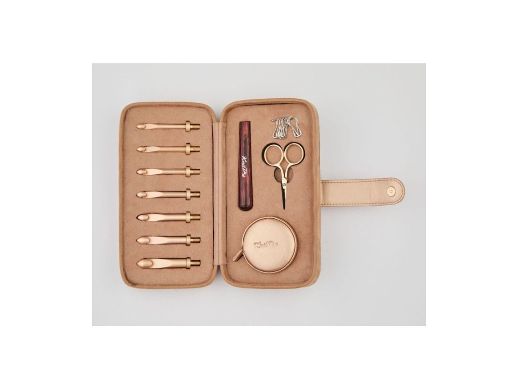 V sadě jsou také nůžky v barvě růžového zlata, designový svinovací metr a 10 značkovačů.