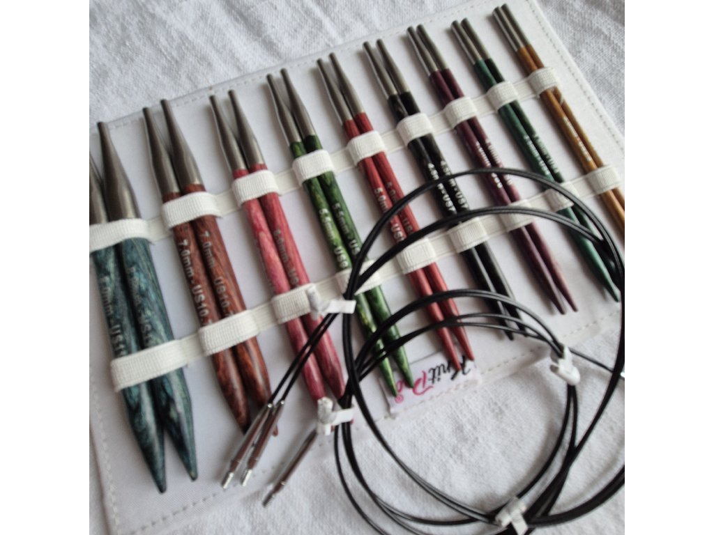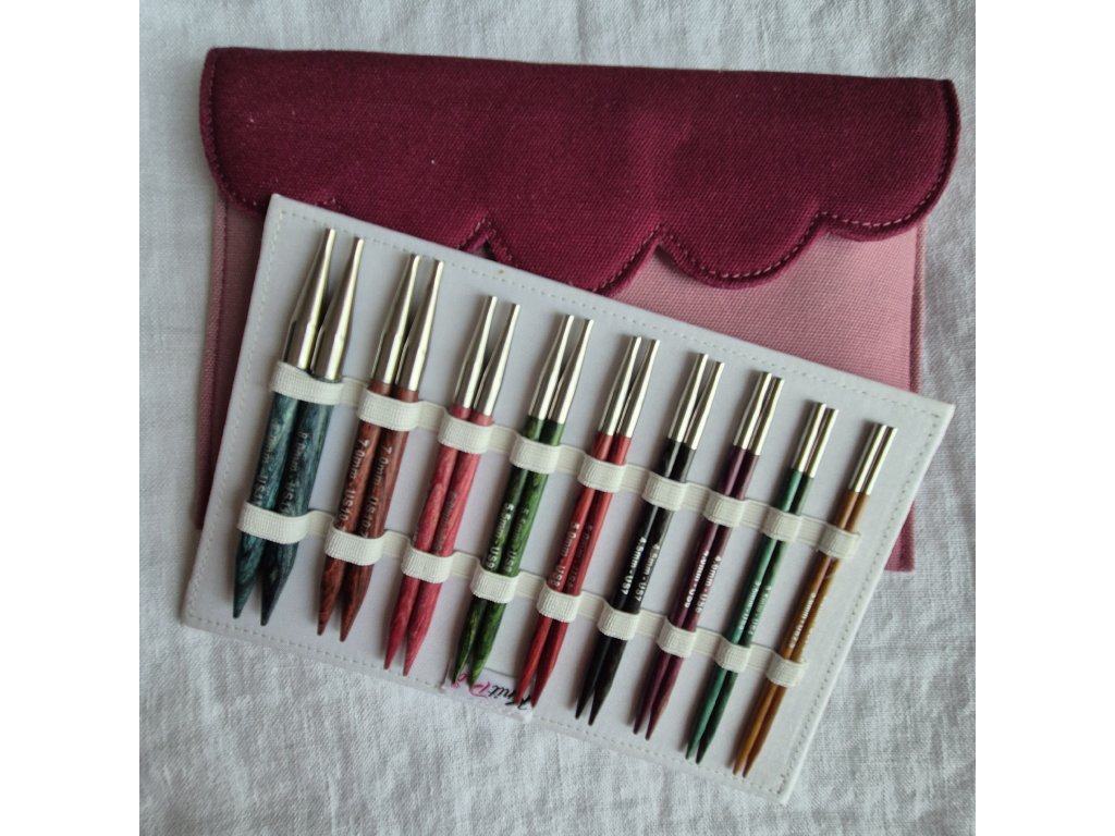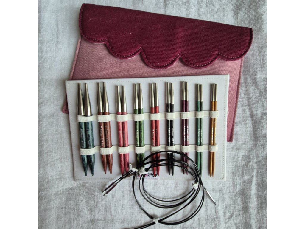 Sady vyměnitelných jehlic Dreamz Deluxe s délkou 10 cm a 13 cm jsou vysoce kvalitním nástrojem pro pletaře, vhodným pro různé pletací projekty. Špičky jehlic 10 cm jsou o něco kratší a pletaři je preferují pro jejich praktickou velikost, která se vejde do rukou. Jehly z březového dřeva jsou k dispozici v atraktivních barvách a nabízejí bezkonkurenční pevnost a odolnost. Nerezová ocelová lanka s nylonovým povlakem nabízejí všestrannost při práci s projekty různých délek a obvodů. Hladké spojení mezi jehlicí a lankem zajišťuje snadné klouzání ok a žádné zasekávání. Sady vyměnitelných kruhových jehel Dreamz, uložené v látkových pouzdrech v barvě Bordeaux, jsou nejen všestranné, ale také pohodlnou volbou pro začínající i zkušené pletaře.