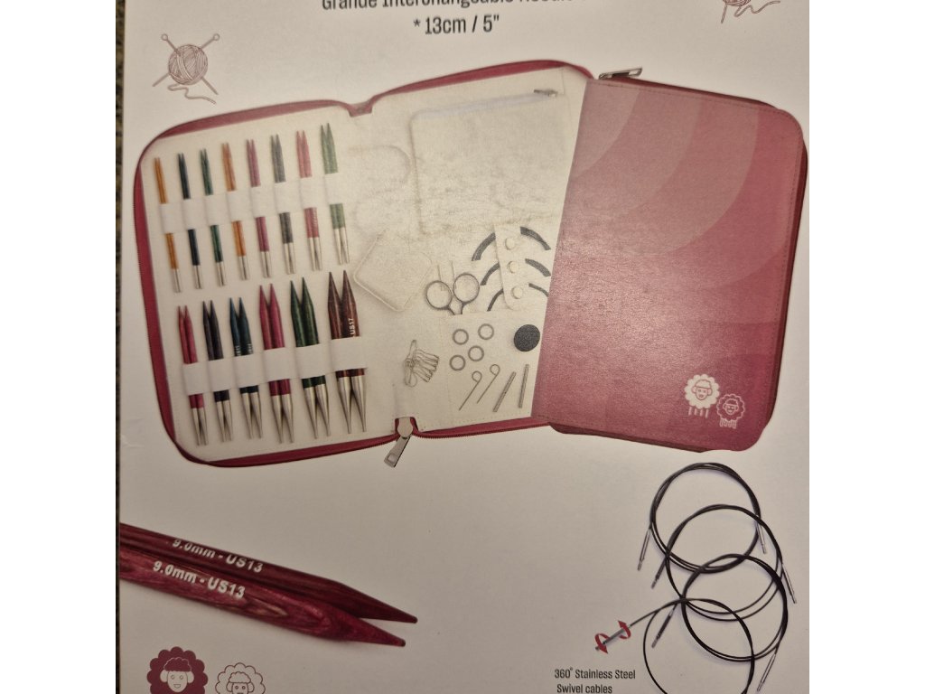 Sada vyměnitelných kruhových jehlic - Grande Set je sada vyměnitelných kruhových jehlic, navržená pro práci s tenkými i silnými přízemi. Tato sada je ideální pro pletení běžných, ale i velkých a objemných projektů, jako jsou šály, deky, svetry a další hrubé úplety. Díky široké škále velikostí jehlic obsažených v této sadě můžete snadno měnit jehlice podle potřeb vašeho projektu, což vám poskytne maximální flexibilitu a efektivitu při pletení. Jehlice v této sadě jsou vyrobeny z vysoce kvalitního a odolného březového dřeva, které poskytuje hladký povrch pro snadné klouzání příze. Ergonomický design rukojetí a jehlic minimalizuje únavu rukou i při dlouhém pletení a zajišťuje pohodlí při práci na větších projektech. Každá velikost jehlic je odlišena vlastní barvou, takže je snadno rozpoznáte.