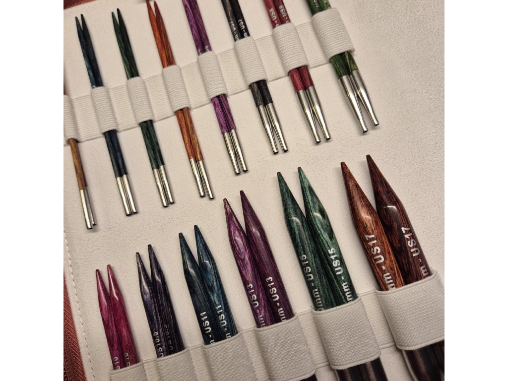 Sady jehel Dreamz s vyměnitelnými kruhovými pletacími jehlicemi o délce 13 cm (5") jsou promyšleně navrženy s ohledem na pohodlí při pletení. Hladké a lehké vyměnitelné špičky kruhových jehel vyrobené z vysoce kvalitního březového dřeva zajišťují snadné stehy a jsou barevně odlišeny podle velikosti pro snadnou identifikaci. Hladký spoj se nezasekává a nylonem potažené nerezové lanko leží plocho, aby se zabránilo kroucení. Ať už jste zkušený pletař, nebo teprve začínáte, tyto vyměnitelné sady kruhových jehel balené v praktických látkových pouzdrech v barvě Bordeaux vám poskytnou nástroje, které potřebujete k vytváření krásných projektů v naprostém pohodlí.