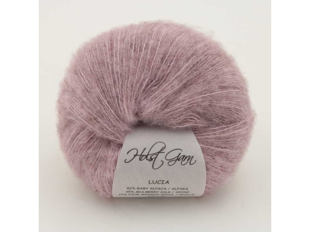 LUCIA Holst Garn - luxusní, jemná a nadýchaná příze 42 % baby alpaky, 35 % morušového hedvábí, 13 % merino vlny a 10 % jaku.