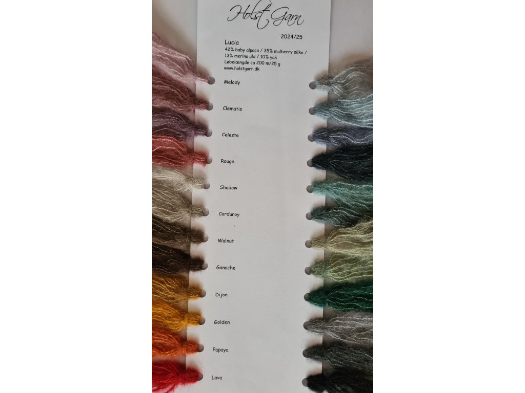 Lucia doporučujeme jako příplet k dalším přízím Holst Garn: Coast, Tides, Haya, Titicaca a Supersoft.
