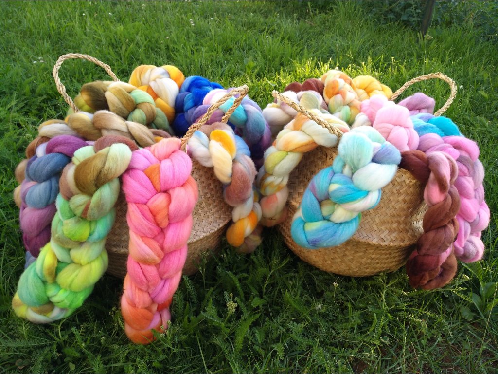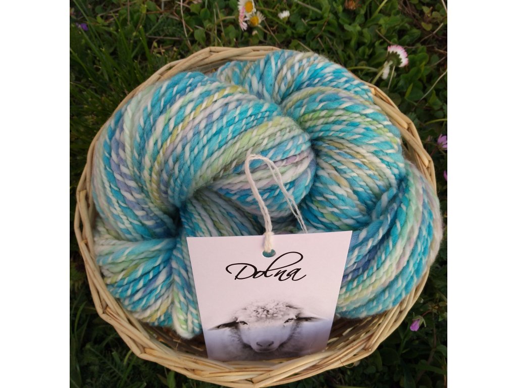 Mírně nepravidelná ručně předená dvounitka. Ručně barvená americkými barvami Jacquard. Jsou to kyselé barvy, speciálně určené pro barvení přírodních materiálů, živočišného původu - ovčí vlna, angora, kašmír, mohér, hedvábí... Barvy jsou stabilní, vhodným praním se neztrácejí...