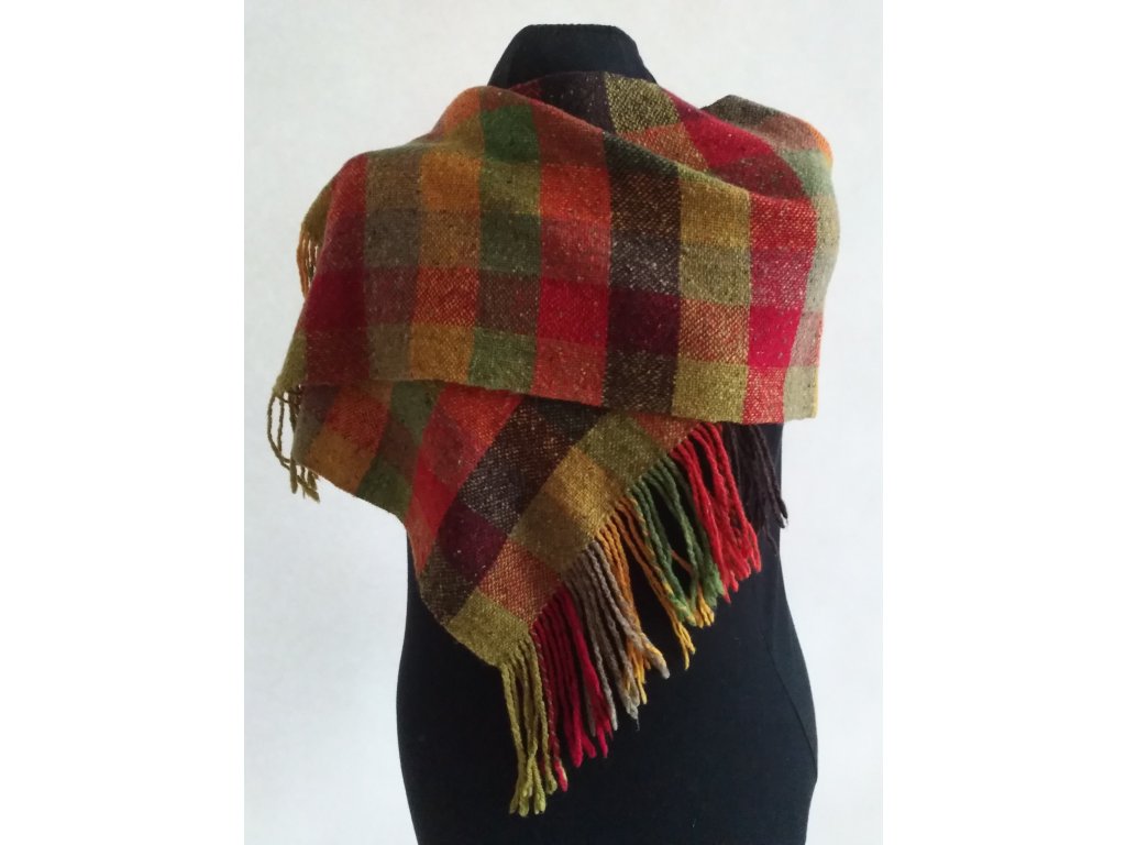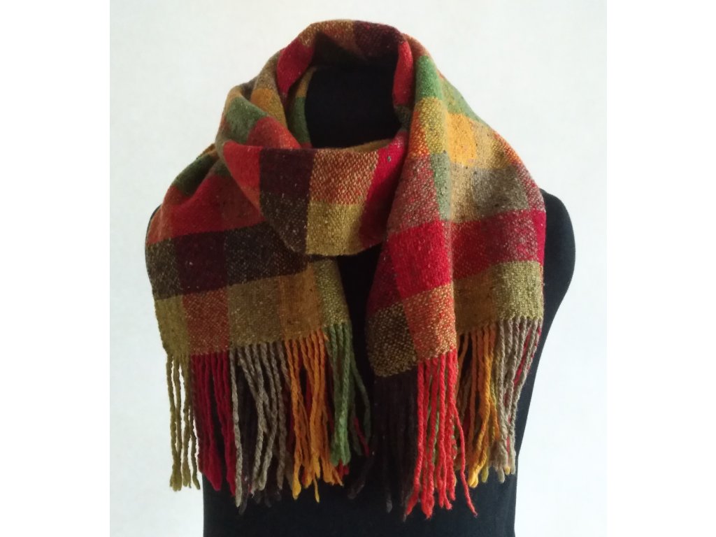 Šála je ručně tkaná z tradiční irské tvídové příze Soft Donegal - 100% velmi měkká Merino vlna s příměsí různobarevných nopků.