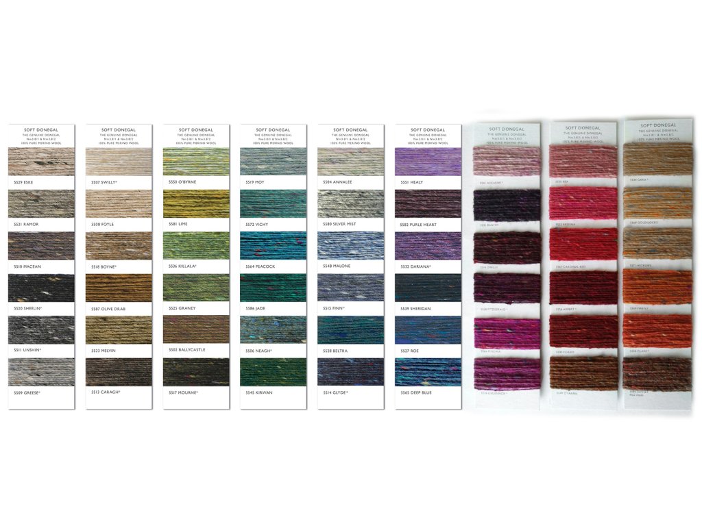 Soft Donegal je krásná tvídová příze. Vyrábí se ze 100% velmi měkké Merino vlny s příměsí různobarevných nopků. Je zpracovávaná v irské firmě s dlouholetou tradicí - Donegal Yarns a je vhodná k dalšímu použití - pletení, háčkování, tkaní, úžasná pro vyplétané vzory - Fair Isle