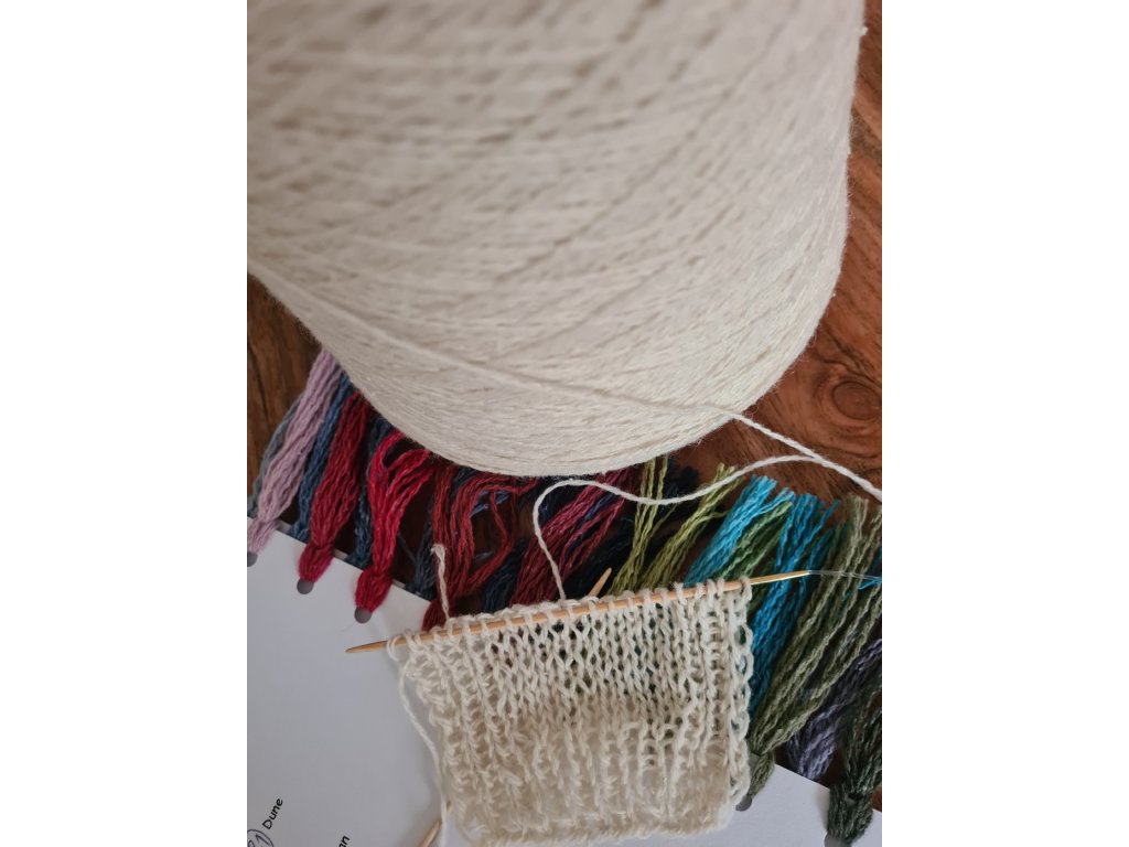 Tides od Holst Garn je dvounitka - směs 70% jehněčí vlny a 30% hedvábí.